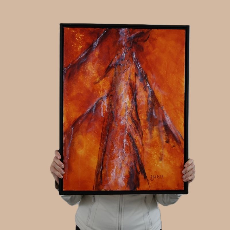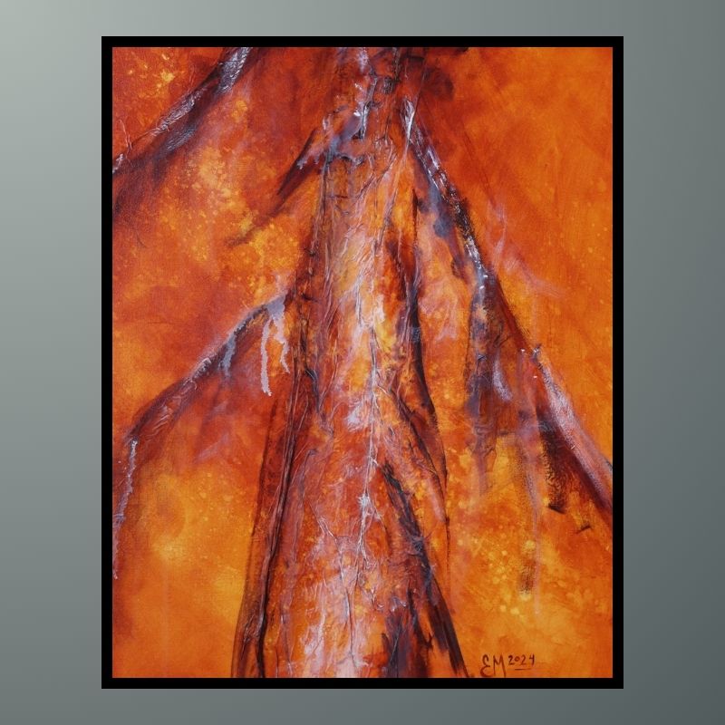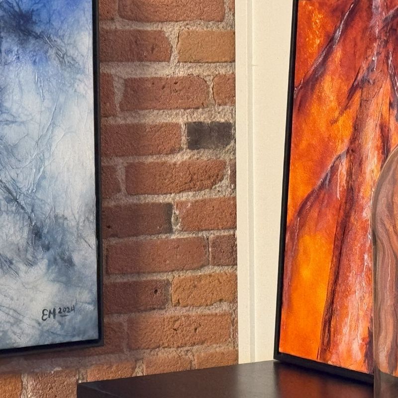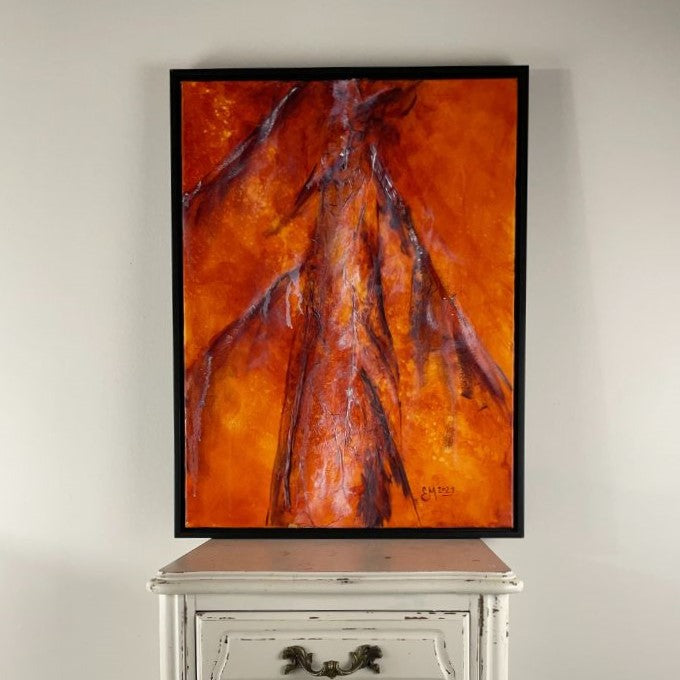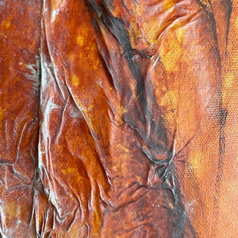 Mixed media (original acrylic painting textured with acid-free tissue paper) on canvas.