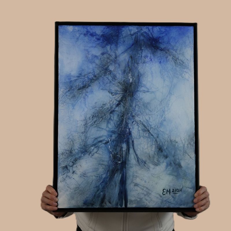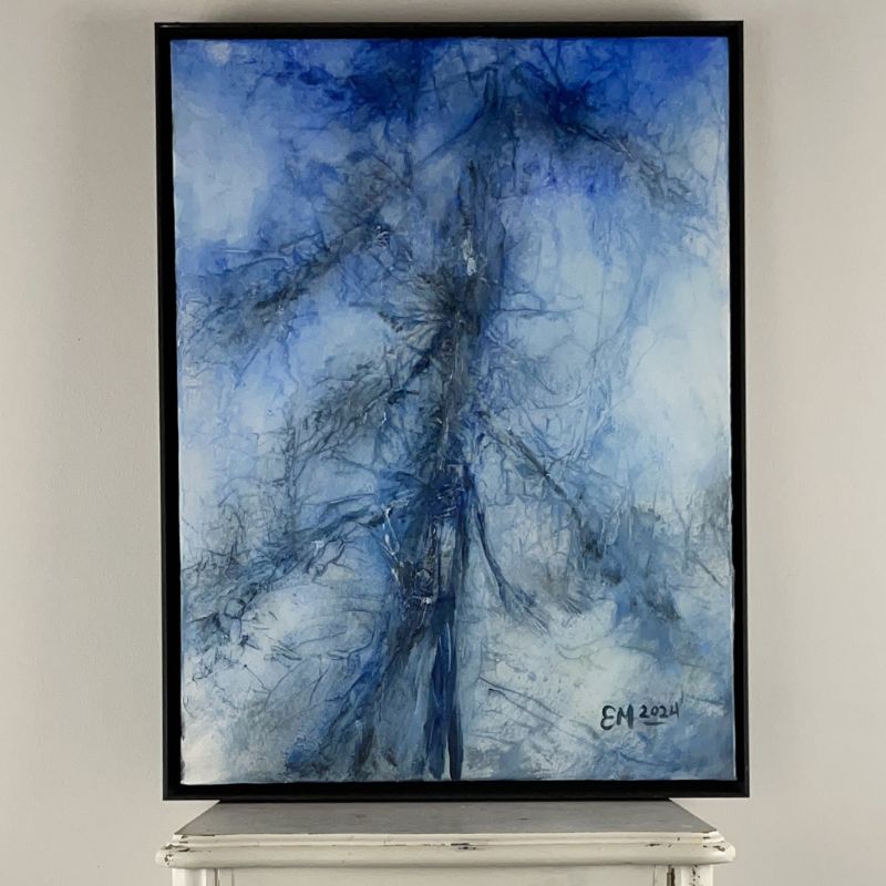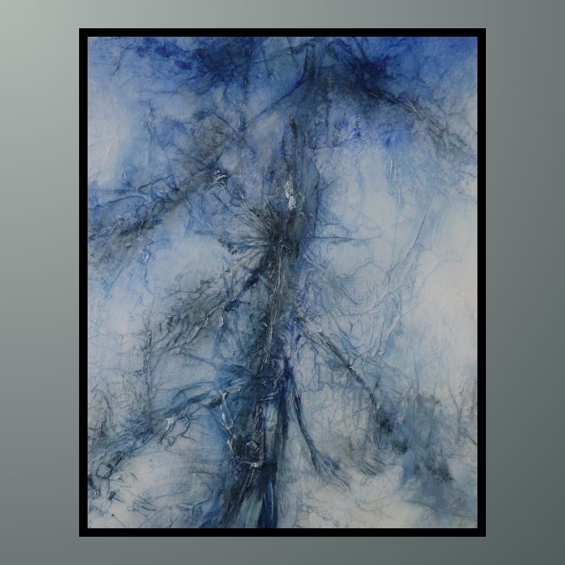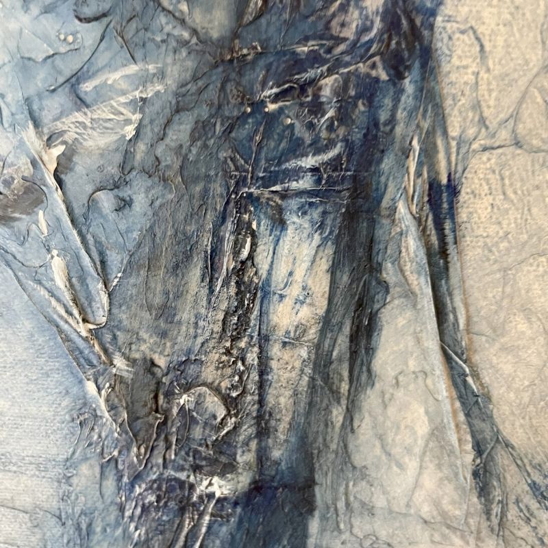 Mixed media (original acrylic painting textured with acid-free tissue paper) on canvas.
