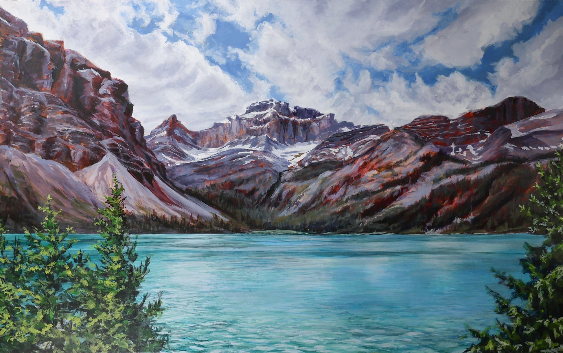 A warm breeze ruffled the calm surface of the turquoise water in Lake Minnewanka. I paused in awe to watch the clouds rolling over the jagged peaks, as the light bounced from sun to ice to cloud to lake and back again.